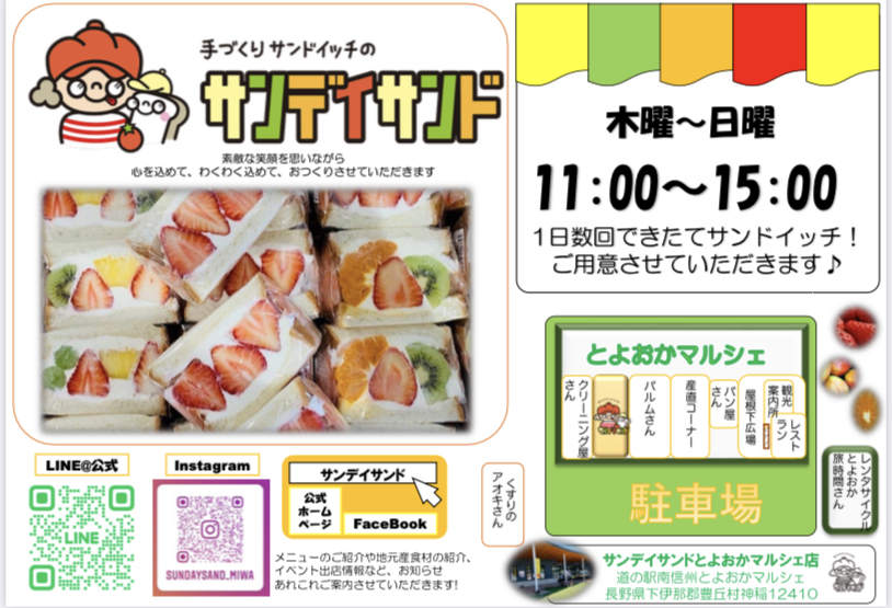 今週もわくわくなイベント盛りだくさん❣️通常オープン日も地元珈琲店さんの自家焙煎豆🫘で淹れるコーヒーや、長野県産りんごジュースなど、季節のサンドイッチと一緒にご用意しておりますので、どうぞ☕️🍎✨