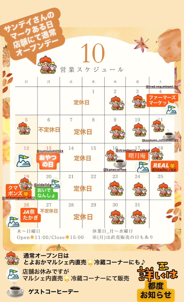サンデイサンドの食材は、季節作物のため例年旬の時期に目安でご案内しておりますが、天候などにより大きく変化する場合もございます☀️