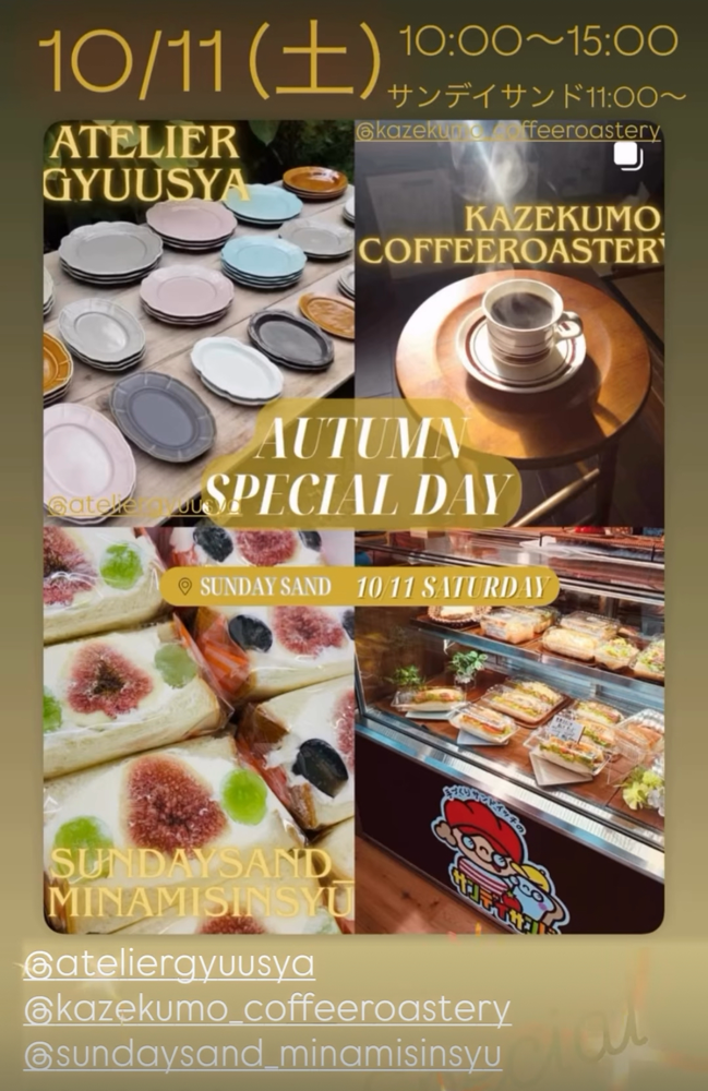 今週もわくわくなイベント盛りだくさん❣️通常オープン日も地元珈琲店さんの自家焙煎豆🫘で淹れるコーヒーや、長野県産りんごジュースなど、季節のサンドイッチと一緒にご用意しておりますので、どうぞ☕️🍎✨