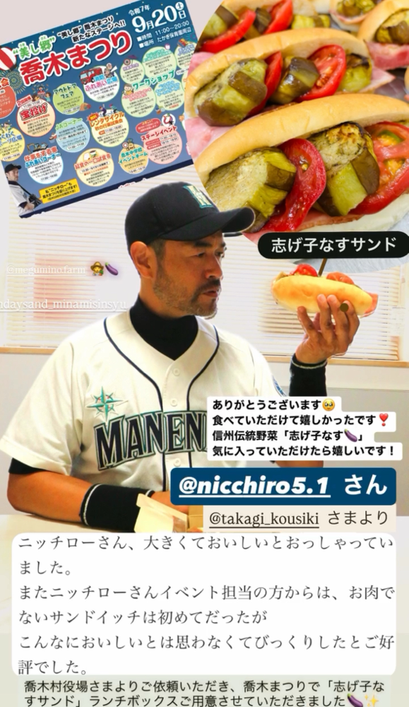 秋なすシーズンになって、甘さも旨みもノリノリ〜とろける味わいの『志げ子なすサンド』もご用意させていただきます‼️